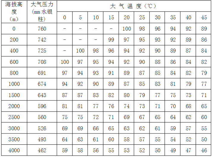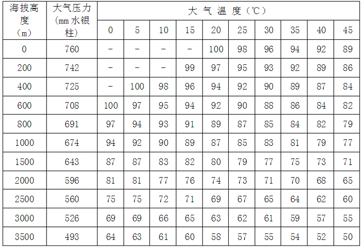 2、如果外界氣壓、氣溫、濕度等上述標(biāo)準(zhǔn)情況下,則應(yīng)按下列附表中所列的修正系數(shù)加以修正,即實(shí)際功率應(yīng)等于標(biāo)準(zhǔn)乘以修正系數(shù)c。下列兩表分別為50%及100%相對(duì)濕度下各種氣、氣溫情況的修正系數(shù)c如溫度為其他數(shù)值時(shí),可利用插入法根據(jù)此二表計(jì)算出相應(yīng)的修正系數(shù)。