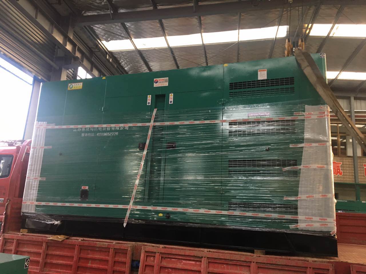 南京福昌環(huán)保公司訂購(gòu)的600KW上柴發(fā)電機(jī)采用上柴股份(上柴動(dòng)力)SC27G900D2配套江蘇雙馬全銅無(wú)刷發(fā)電機(jī)SMI-600-4 ,同時(shí)配套我公司自主研發(fā)設(shè)計(jì)的靜音箱,含底座油箱,直接安裝于戶(hù)外使用,經(jīng)過(guò)客戶(hù)到廠(chǎng)驗(yàn)收合格,裝成發(fā)貨客戶(hù)工廠(chǎng)!